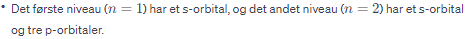 - Hvert energiniveau opdeles i underniveauer, også kaldet orbitaler, der beskrives af underkvantetallet