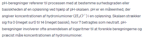 En gymnasieopgave om pH-beregninger kan være en interaktiv og praktisk tilgang til at forstå kemiske principper, og den kan dække forskellige aspekter af syrer, baser og pH-skalaen. Her er nogle ideer til en sådan opgave: