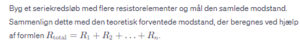 Byg et seriekredsløb med flere resistorelementer og mål den samlede modstand. Sammenlign dette med den teoretisk forventede modstand, der beregnes ved hjælp af formlen